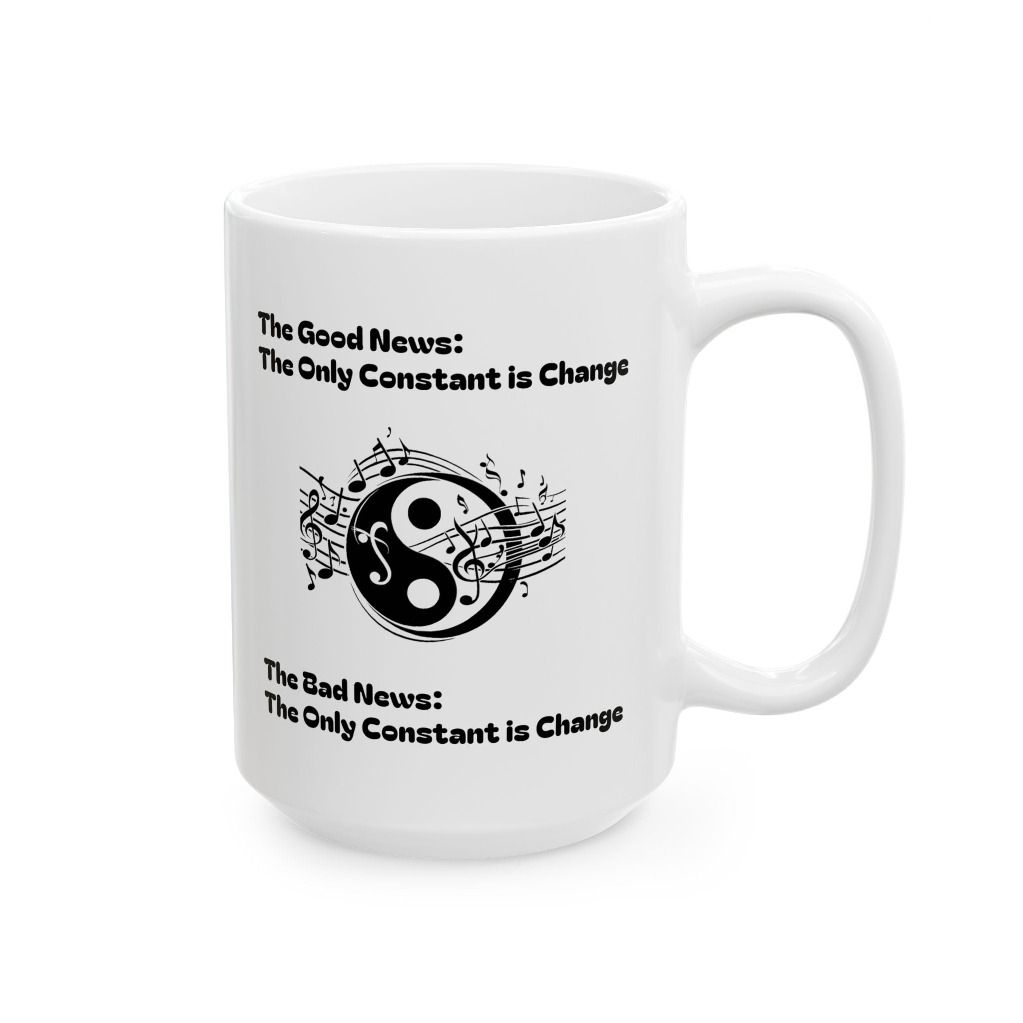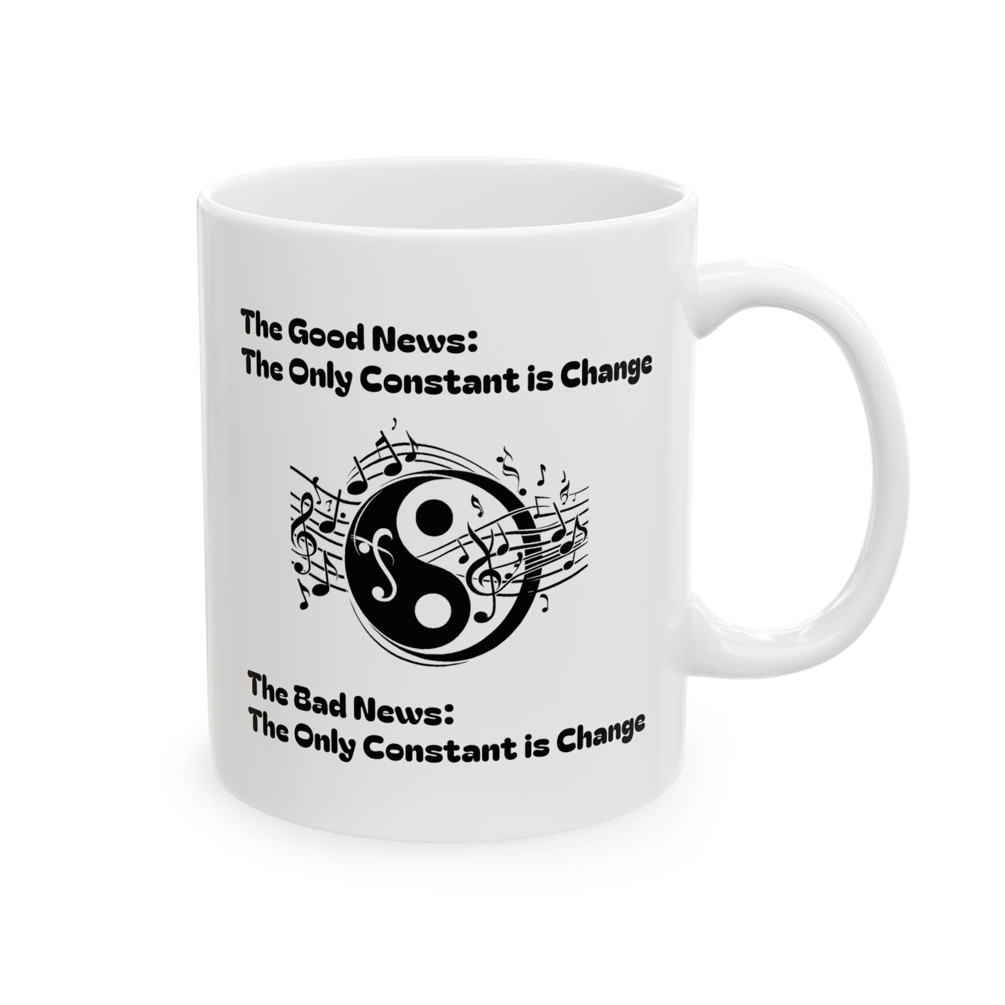 Yin Yang Music Lover Spiritual Ceramic Coffee Tea Mug | the Only Constant Is Change C-Handled Music Themed Yin Yang Mug