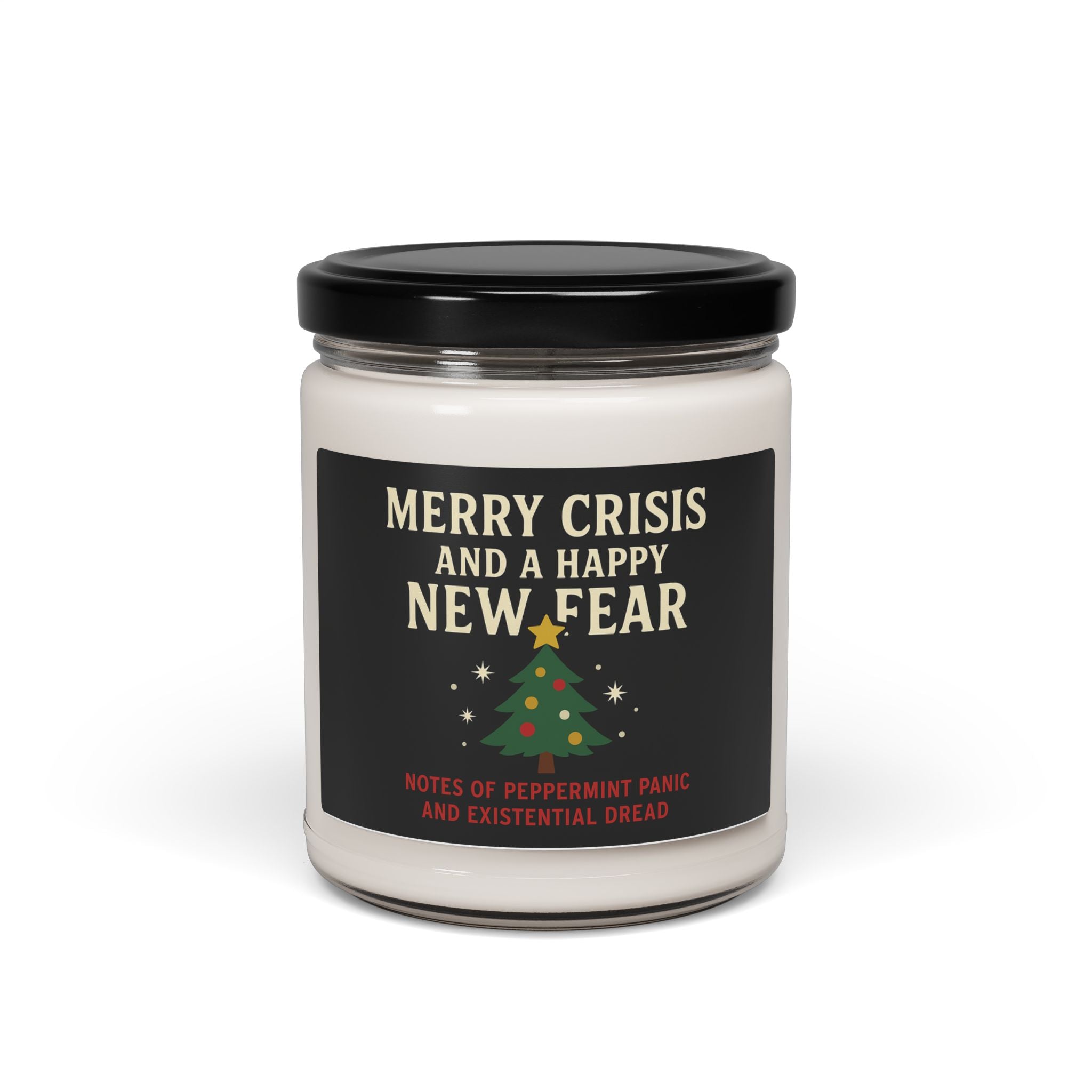 Funny Christmas Candle 'Merry Crisis and a Happy New Fear' | Holiday Gift for Friends | Sarcastic Scented Candle | Humorous Christmas Decor