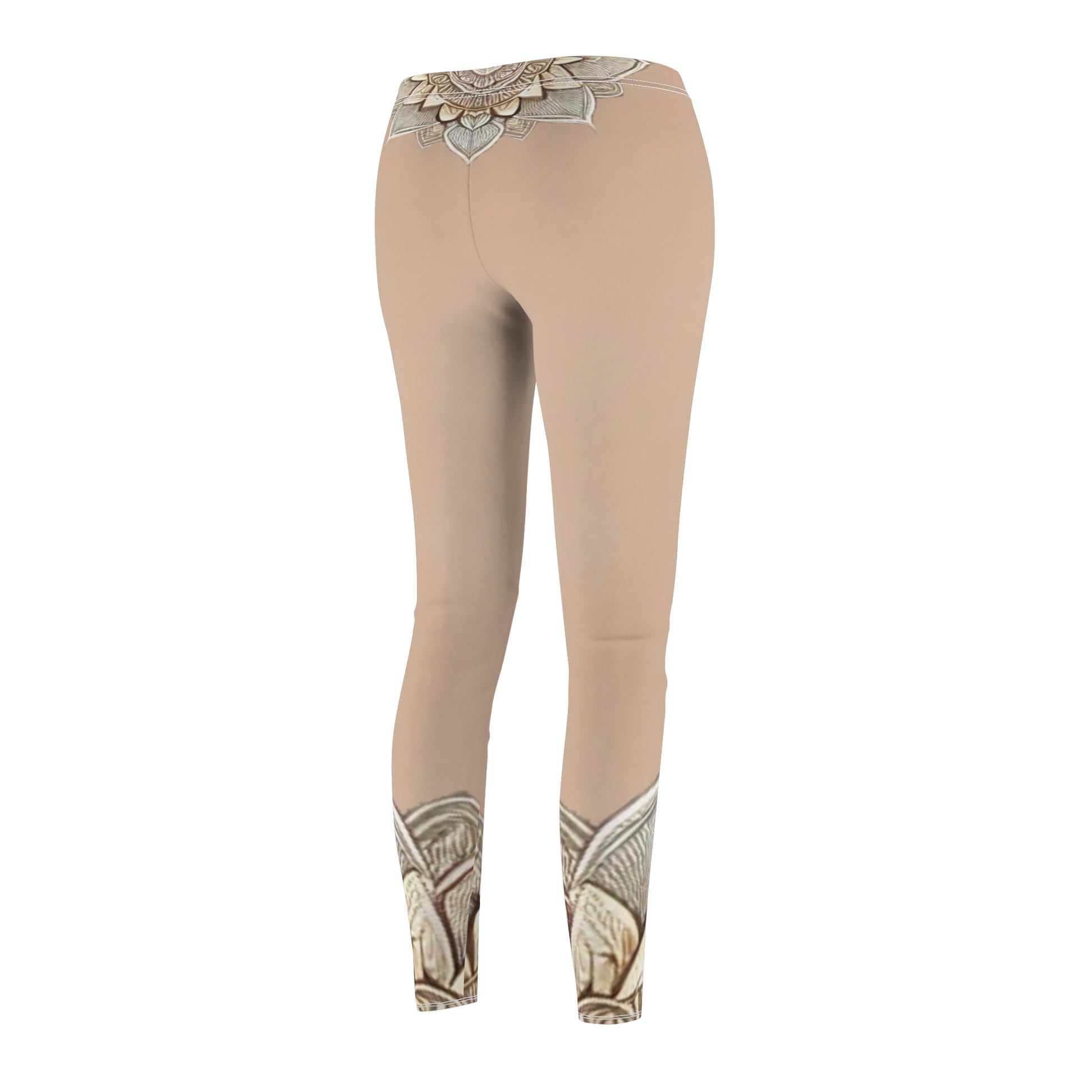 Beige Mandala Yoga Leggings - Boho Lotus Print | High Waisted Women's Activewear Pants