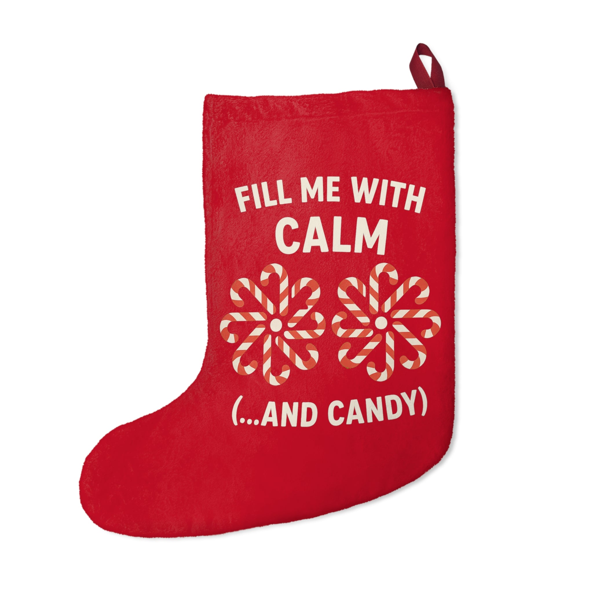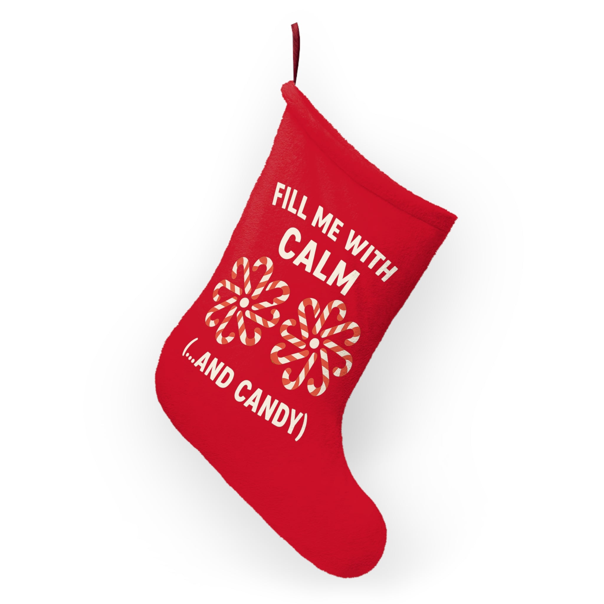 Fill Me With Calm Red Christmas Stocking | Funny Holiday Decor, Candy Stocking, Stress Relief Gift, Mindful Xmas Decoration for Home