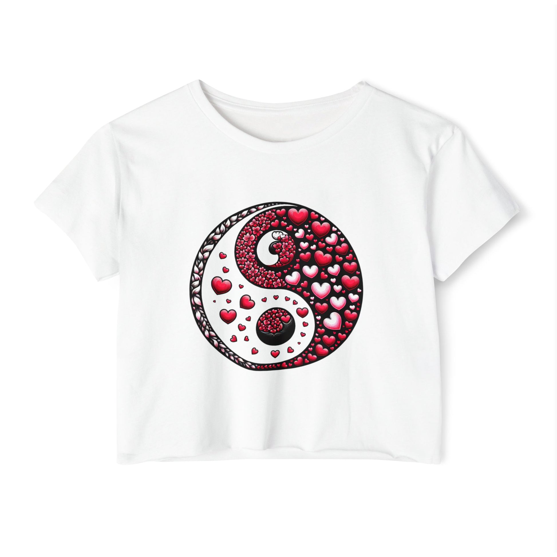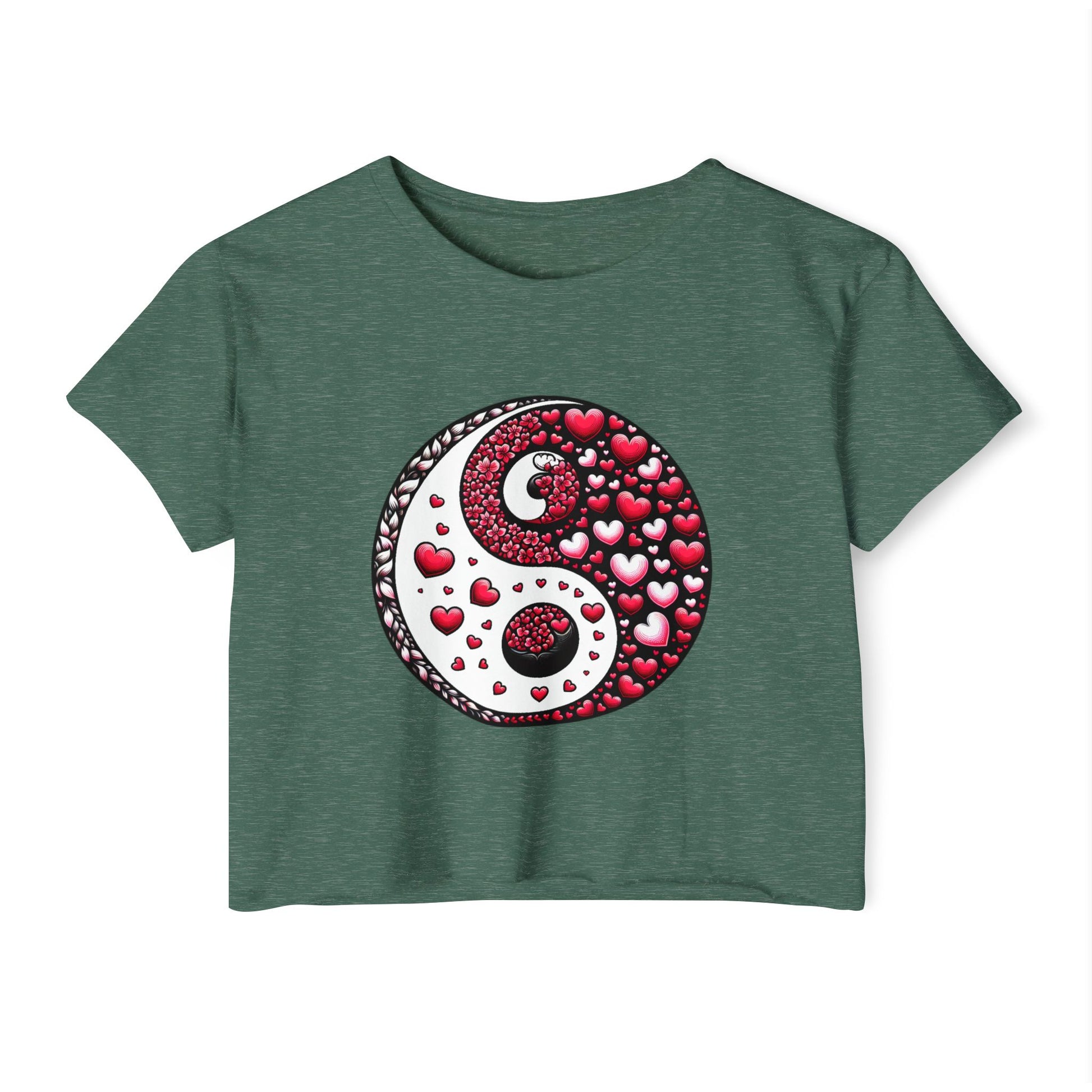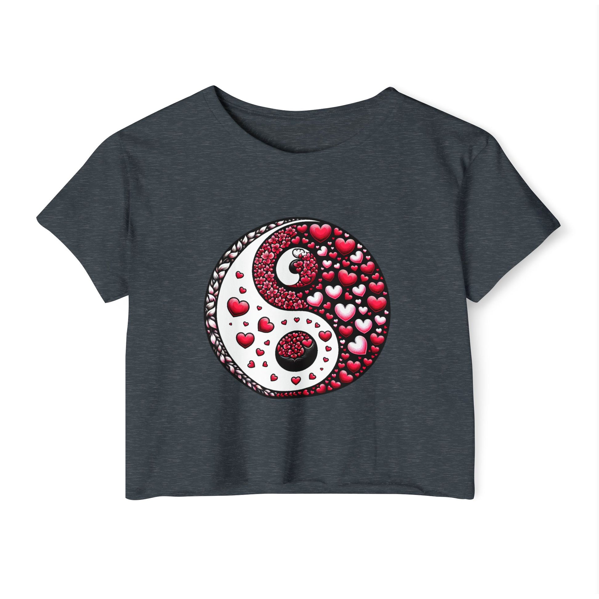 Yin Yang Heart Crop Top, Trendy Festival Tee, Boho Summer Shirt, Womens Casual Style, Valentines Day Shirt