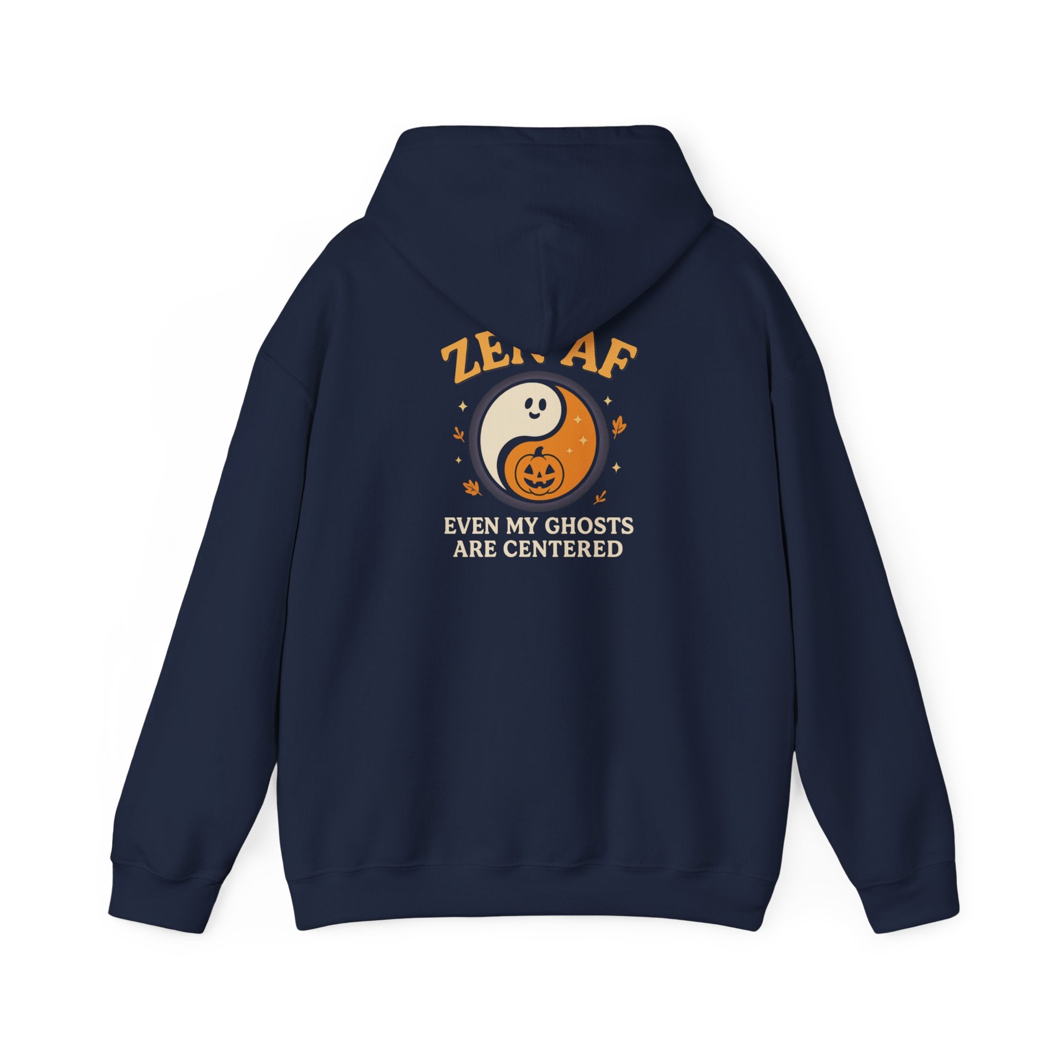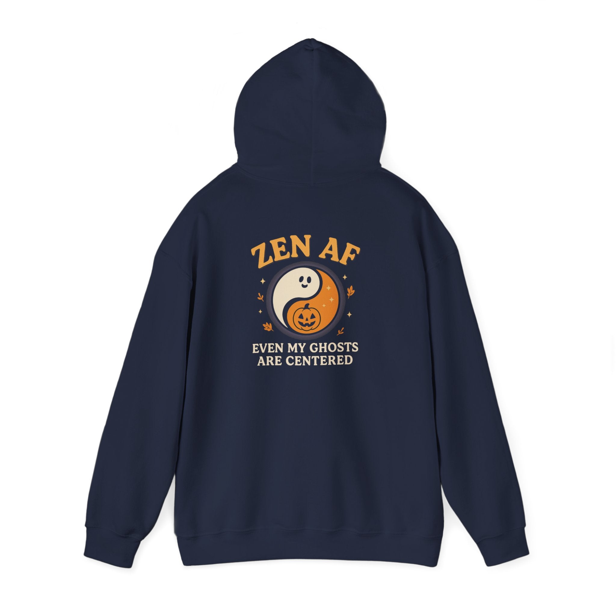 Zen AF Halloween Hoodie | Funny Ghost Yin Yang Sweatshirt | Spooky Cozy Fall Pullover for Yoga Lovers & Mindfulness Fans